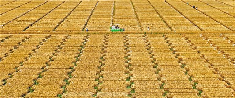 ▼6月17日,山东省烟台市农科院冬小麦育种试验田内一派繁忙景象。