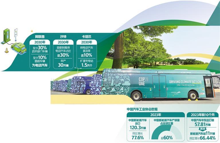 近年来,面对日益严峻的气候变化挑战和越来越紧迫的减排压力,中东地区国家加快推动能源绿色转型和经济多元化,发展绿色交通成为其中一项重要内容。中国制造的电动汽车凭借高性价比和美观设计,受到该地区越来越多业内人士和消费者的青睐。中东正成为中国电动汽车企业开拓国际市场的一片“蓝海”。
