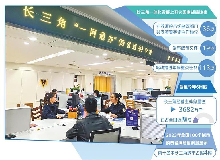 据介绍,长三角地区锚定国际一流营商环境,强化企业登记制度创新集成,推进市场准入政策、规则和服务体系全面统一。如今,长三角地区已实现电子营业执照共享复用,经营主体身份在线“一次验证、全网通用”,企业迁移、信息变更等50余项市场监管事项均可实现“一网通办”,企业开办时限平均缩短至0.85天。