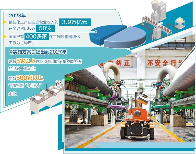 近日,工业和信息化部、国家发展改革委等9部门联合发布《精细化工产业创新发展实施方案(2024—2027年)》(以下简称《实施方案》),聚焦抓重点产品、抓重点工艺技术、抓园区化发展,布局有效供给能力提升、安全环保技术改造、创新体系完善、强企育才、产业布局优化、发展环境改善六大行动,提出到2027年,培育5家以上创新引领和协同集成能力强的世界一流企业,培育500家以上专精特新“小巨人”企业,创建20家以上以精细化工为主导、具有较强竞争优势的化工园区。