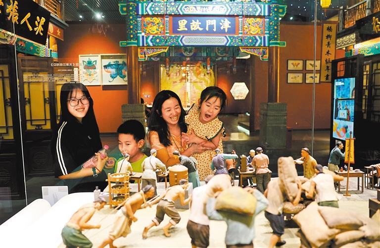 一边通水播绿,一边改造提升,沧州在大运河本区段聚力打造9处旅游景区度假区、8处文化产业公园、15个古镇古村和文旅小镇、33个文化生态公园。中心城区内,陆续建设了南川老街、园博园、沧州大化工业遗存文化区、百狮园、运河公园等人文地标。其中,在沧州落成的中国大运河非物质文化遗产展示馆是大运河沿线具有代表性的非物质文化遗产集中展示地,展示了沿线8省(市)各类非遗项目1022项。除此之外,作为运河文化主要组成部分的沧州武术、吴桥杂技被列为国家级非遗项目,并实现了有人传、有人学的传承与发展。