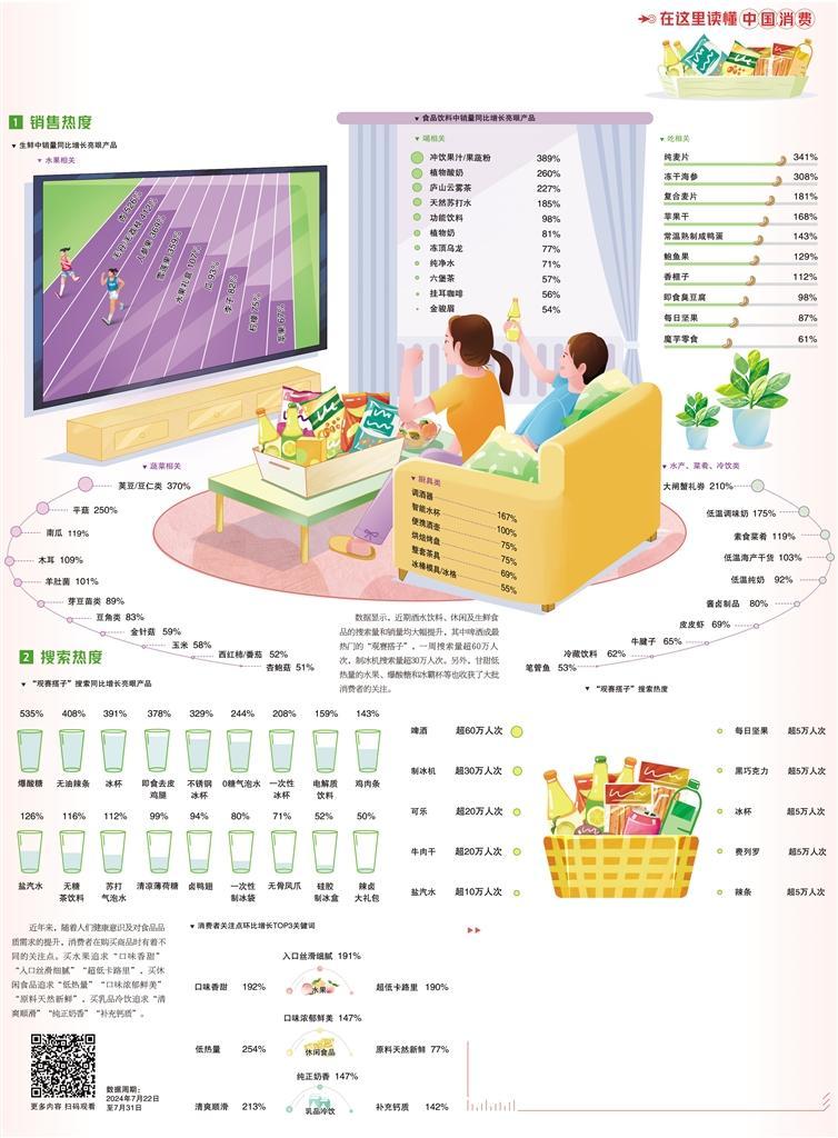 精彩的体育赛事不仅点燃了观众们的热情,也带动了消费市场的繁荣。从冰爽解暑的啤酒到健康美味的植物酸奶,从甘甜多汁的水果到各式营养丰富的夜宵小吃,每一种“观赛搭子”都以其独特的魅力,成为连接体育迷与美好生活的重要桥梁。体育赛事的持续火热,也给相关企业带来新的商机,要结合消费者的需求,推出更多便携、即食产品,以丰富其观赛体验。