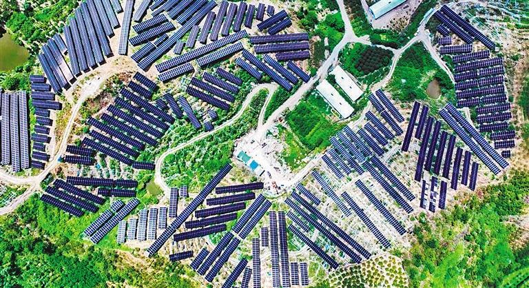 7月30日,从空中俯瞰浙江省金华市金东区源东乡600兆瓦农光互补光伏发电项目施工现场。项目投用后,预计年发电量可达7.8亿千瓦时。时宽兵摄(中经视觉)