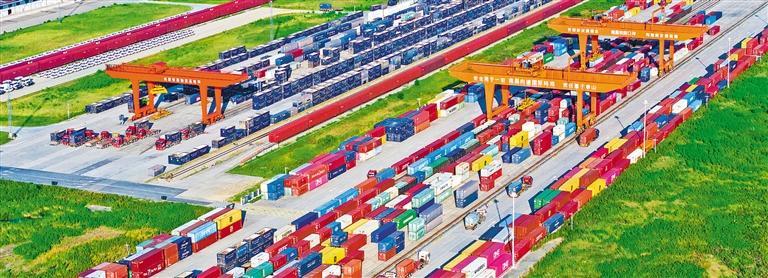 8月3日,江西省南昌市南昌县,南昌国际陆港内满载各类货物的集装箱有序装车。近年来,南昌国际陆港充分依托“公铁水空”四位一体的区位优势,成为区域重要集散中心,对内可联通浙江、广东、福建等省份,对外可通达欧盟、中亚、东南亚等地区。