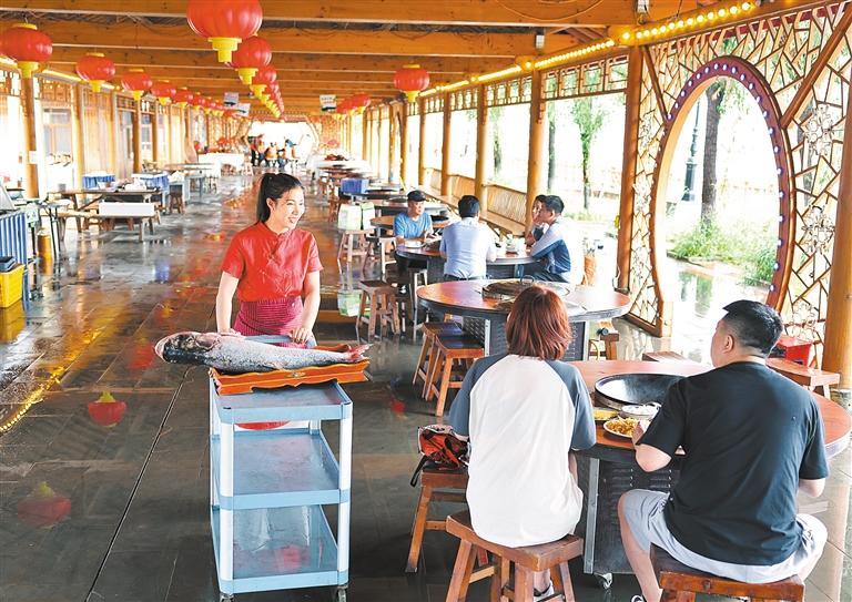 用“乘法”发展生态旅游。不断丰富完善“捺钵开湖节”“圣湖荷花节”“湿地观鸟节”“冰雪渔猎节”节庆活动内容,新开发圣湖腾鱼、夏夜垂钓、马头琴展演等活动,打造了生态水岸、玉龙湿地、花海、野鸭湾等旅游精品线路,并举办国际冰雕赛、环湖自行车、环湖马拉松等赛事,千方百计积极引流。2023年,查干湖景区累计接待游客403.99万人次。