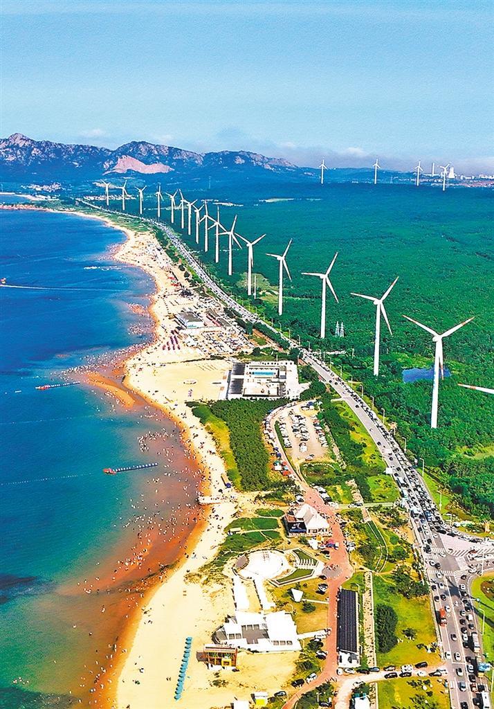 8月7日,山东省荣成市的一处风力发电场。近年来,当地依托风能资源,形成了集风能资源开发、沿海观光旅游、“双碳”环保示范于一体的风电产业集群。杨志礼摄(中经视觉)