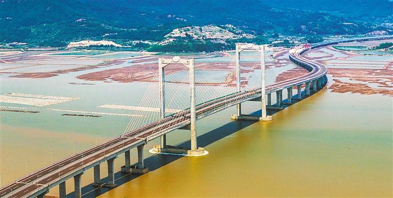 位于浙江省宁波市宁海县境内的旗门港大桥项目正在紧张建设中。大桥建成后,将大大缩短宁波宁海到台州三门之间的距离,带动两地经济社会发展。