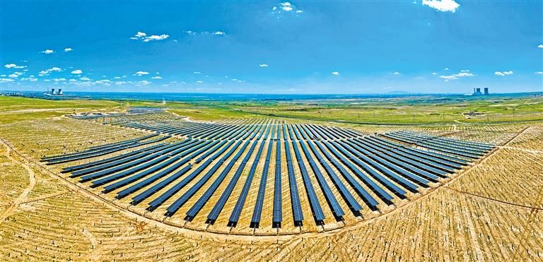 近年来,宁夏回族自治区在沙漠、戈壁等地区建设大型风电光伏能源基地,依托银东、灵绍两大直流外送通道,将塞上绿电“打捆”外送,不断促进能源清洁低碳转型。图为8月12日,位于灵武市境内的光伏基地。袁宏彦摄(中经视觉)
