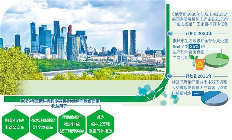 在低碳交通方面,2023年,莫斯科首次向民众发行20亿卢布的绿色债券。莫斯科市市长索比亚宁表示,发行绿色债券的收益将用于购买451辆电动公交车,以及在大环线建设21个地铁站。索比亚宁称,这些环保项目的实施将帮助俄罗斯每年减少排放近千吨污染物,以及减少约4.2万吨温室气体排放。另据俄联邦政府消息,俄罗斯前第一副总理别洛乌索夫指示建立统一的电动汽车充电站服务。根据计划,未来6年,俄罗斯充电站的数量将增加10倍以上,且充电服务将覆盖俄大部分地区。