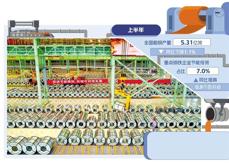 绿色发展是高质量发展的底色。上半年,重点钢铁企业节能投资占比7.0%,同比提高0.9个百分点。