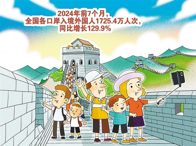 “China Travel”有多火?国家移民管理局近日发布数据显示,今年前7个月,全国各口岸入境外国人1725.4万人次,同比增长129.9%;来华旅游外国人预计拉动消费超1000亿元。大力发展入境旅游,对带动我国旅游业整体水平提升、拉动经济和消费、促进对外开放、传播中华优秀传统文化和文明成果具有十分重要的意义。去年以来,我国相继对多国试行单方面免签政策,与部分国家实行互免签证政策,推出扩大144小时过境免签等一系列便利外国人来华政策措施,外籍人员来华数量不断攀升,带火入境游市场。但也要看到,外国游客来华旅游还存在一些“堵点”和“难点”,应持续优化完善过境免签等政策措施,扩大活动范围、增加联动区域、优化开放布局,进一步提高政策含金量、吸引力,协同发力提升外国人来华在华便利度。(时 锋)