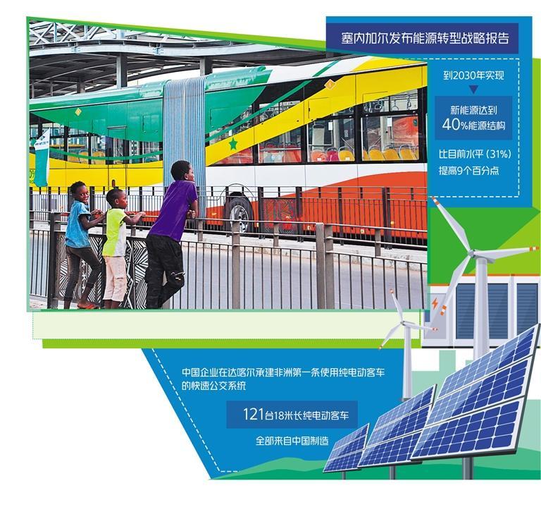 中塞新能源产业合作持续深化。中国企业在达喀尔承建了非洲第一条使用纯电动客车的快速公交系统(BRT),121台18米长纯电动客车全部来自中国制造。由中国企业承建的20个车站和维保基地也都设置有中国制造的光伏系统。