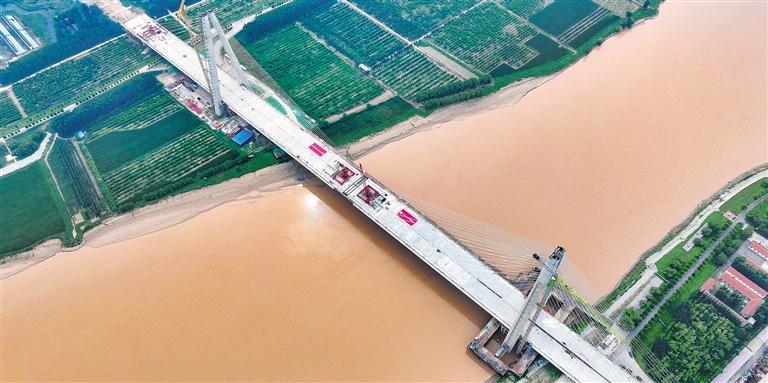 8月25日,在山东东营,黄河三角洲最大跨度A字型斜拉桥——东津黄河大桥顺利合龙。大桥建成投用后,将进一步提升黄河三角洲区域连通国内高速网络能力,促进区域协调发展。周广学摄(中经视觉)