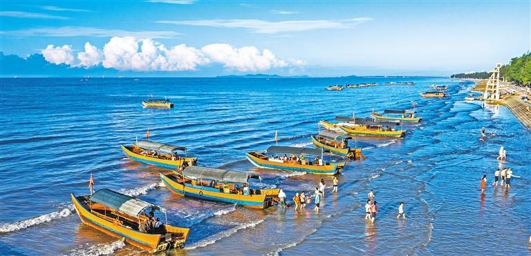 8月26日,广西壮族自治区防城港市东兴万尾金滩,碧海蓝天、景色宜人的旅游环境,吸引各地游客纷至沓来。赵京武摄(中经视觉)