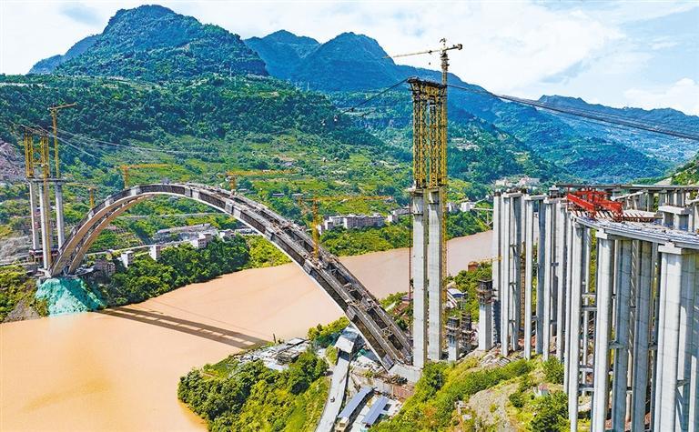 9月1日,位于四川省宜宾市屏山县的西宁河特大桥施工现场,施工人员抢抓工期。该大桥是宜攀高速(沿江高速)连接仁沐新高速的第一段路程,为西向出川大通道四川沿江高速控制性工程之一。