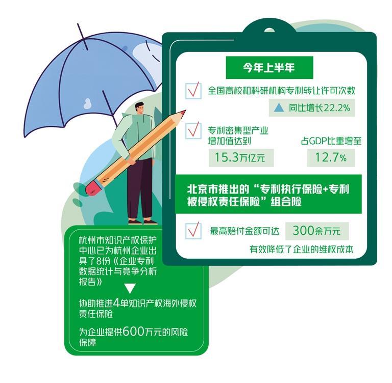 “知识产权保险旨在为企业在专利、商标、著作权等方面的风险提供保障,帮助企业在面临侵权诉讼时减轻财务压力。”中国社会科学院保险与经济发展研究中心副主任王向楠表示,当前,知识产权保险的产品种类日益丰富,从传统的专利保险、商标保险扩展到数据知识产权保险、海外侵权责任保险等新兴领域。这种多样化的保险产品能够更好地满足不同行业、不同企业的需求。