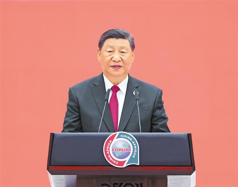 习近平强调,构建命运共同体是人类的共同梦想,现代化是梦想连接现实的必由之路。无论过去还是现在,中非都是构建命运共同体的先行者,未来也必将携手走在现代化进程的前列。我相信,只要28亿多中非人民同心同向,就一定能在现代化道路上共创辉煌,引领全球南方现代化事业蓬勃发展,为构建人类命运共同体作出更大贡献。(致辞全文见三版)