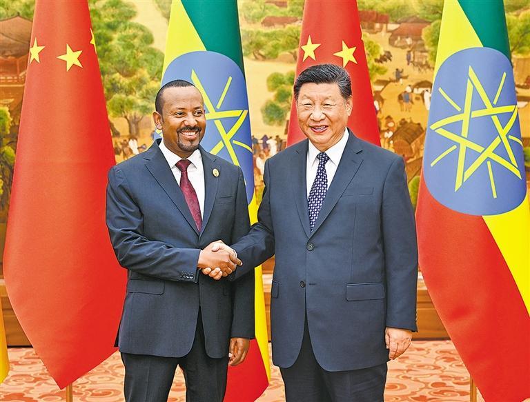 习近平指出,埃塞俄比亚是非洲国家谋求独立解放和自主发展的榜样,中埃塞关系堪称中非友好合作的榜样。两国政治互信基础牢固,各领域合作不断迈向更高水平。中方愿同埃塞持续深化团结合作,推动两国全天候战略伙伴关系不断向前发展,为推动中非友好作出更大贡献。