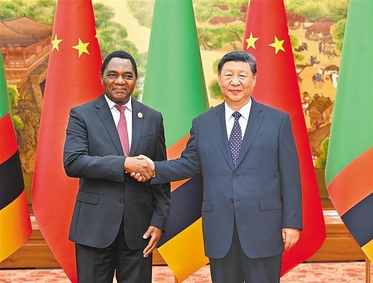 新华社北京9月4日电(记者邵艺博、罗鑫)9月4日上午,国家主席习近平在北京人民大会堂会见来华出席中非合作论坛北京峰会的赞比亚总统希奇莱马。