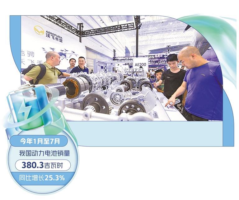 今年以来,我国动力电池产业延续增长态势。中国汽车动力电池产业创新联盟发布数据显示,今年1月至7月,我国动力电池销量为380.3吉瓦时,同比增长25.3%。其中,出口量为69.6吉瓦时,同比增长5.2%。