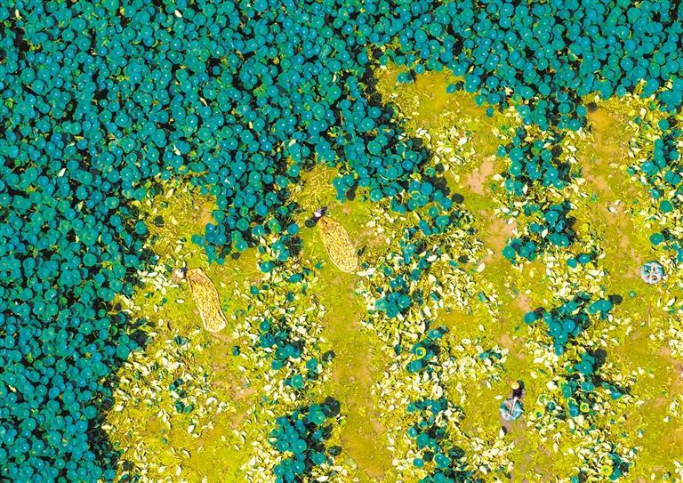 ②8月31日,江苏省淮安市淮阴区诸庄村,村民在采挖莲藕。