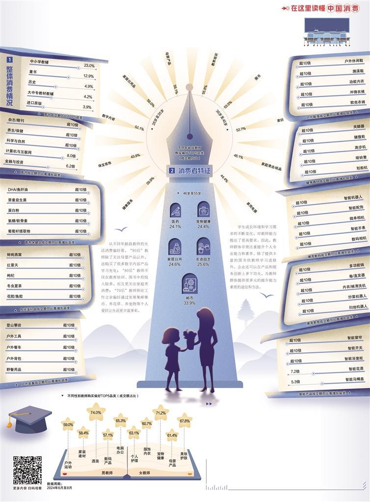 教育部最新数据显示,我国各级各类教师共有1891.8万人,这支教师队伍不仅支撑起了世界上最大规模的教育体系,还蕴藏着巨大的消费潜能。从消费数据看,教师们愿意在自身能力提升方面加大投入,也表现出爱运动、关注科技新潮的消费特征。