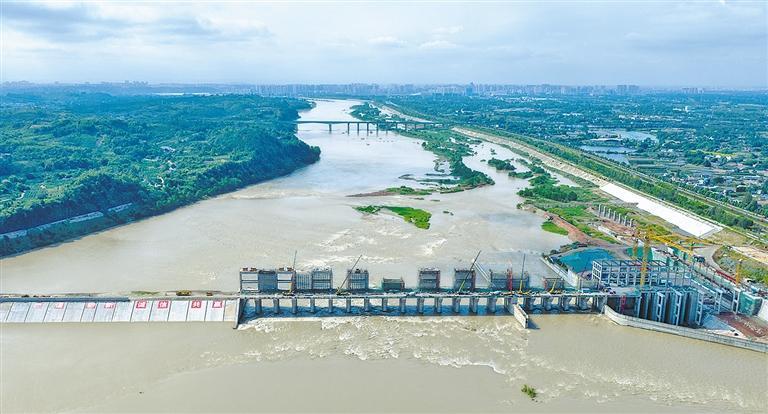 9月10日,位于四川省眉山市的岷江彭山尖子山航电枢纽工程施工现场,工程技术人员在组装坝顶排架柱及发电设备。该项目建成后,将打通眉山经成都到上海的水道交通,实现重型物资运输东西联动。翁光建摄(中经视觉)