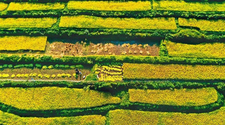 9月10日,重庆市黔江区邻鄂镇高坪村村民在收割稻谷。高坪村有2000多亩被称为“千丘田”的梯田,是当地保存完整的大型农田设施,被列为该区农业农事重点文物保护单位,成为“文物梯田”。