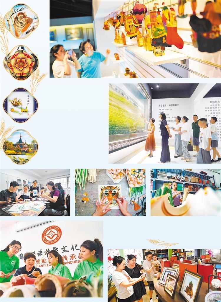 经过长期探索创新,麦秆剪贴技艺不断突破传统,工艺手法从初始的刮、剪、粘贴,到抢毛与撕毛等技艺的变化,表现手段逐渐多样化。同时,麦秸画艺术的表现形式也更加丰富,承载地域特色的伴手礼、冰箱贴等文创产品更加适合市场需求,受到年轻人的青睐。此外,众多手工匠人薪火相传,通过非遗技艺走进社区、走进校园、走进商圈,让更多人了解非遗麦秸画艺术的自然质朴之美,也让传统麦秆剪贴技艺焕发出新的生机。