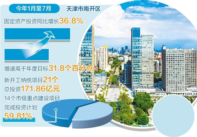 今年1月至7月,南开区固定资产投资同比增长36.8%,增速高于年度目标31.8个百分点;新开工纳统项目21个,总投资171.86亿元;14个市级重点建设项目完成投资计划59.81%。天津市南开区副区长霍志刚表示,目前,南开区把盘活存量与培育增量、提升质量同步谋划和推进,推动城市业态、功能、品质提升。今年以来,盘活土地4处、占地面积17.28万平方米;盘活1000平方米以上载体44处、建筑面积27.32万平方米。