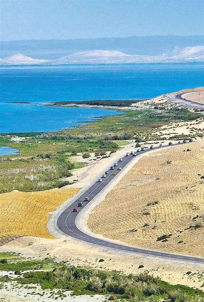 九月十五日,位于新疆巴音郭楞蒙古自治州境内的环博斯腾湖公路通车仪式在博湖县博斯腾湖白鹭洲景区举行。公路全长二百余公里,将为当地旅游业发展注入活力。年 磊摄(中经视觉)