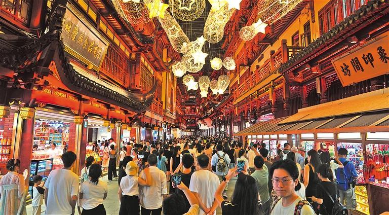 9月17日,市民在上海豫园游览灯会。中秋假期,人们走出家门,乐享多彩假日。陈浩明摄(新华社发)