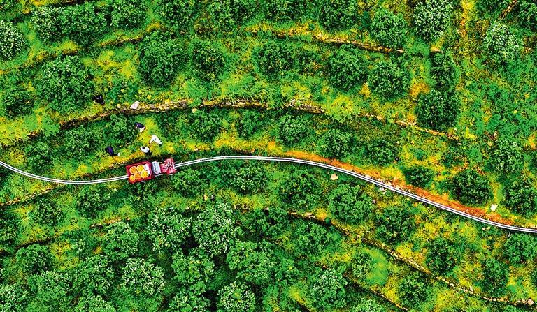 在重庆市奉节县安坪镇脐橙种植基地,果农正在测试山地轨道运输车运行情况。近年来,奉节县发展以数字化、智能化为基础的现代农业生产,大力推广山地轨道运输车、水肥一体化等智能科技装备,有力提升了脐橙生产机械化水平。王传贵摄(中经视觉)