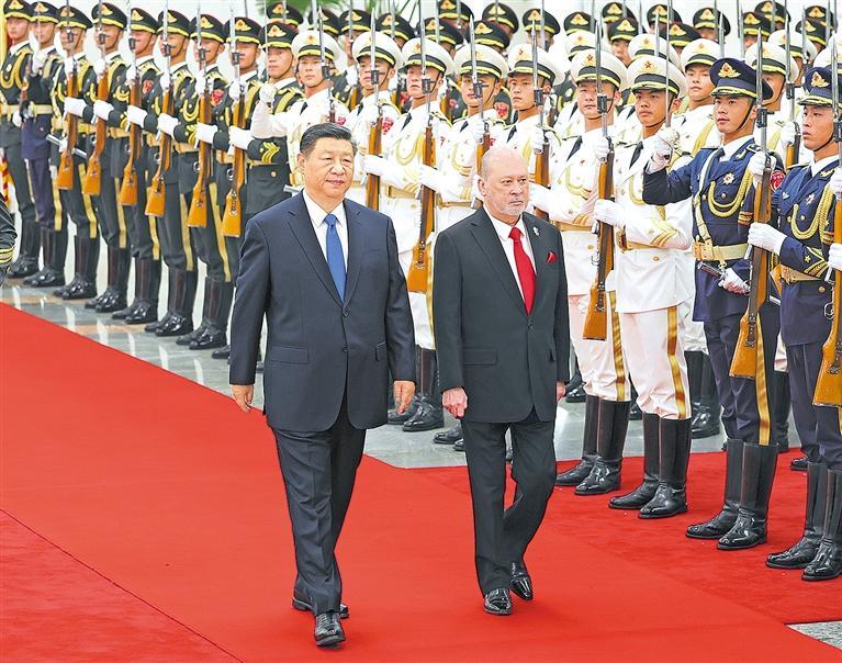 会谈前,习近平在人民大会堂北大厅为易卜拉欣举行欢迎仪式。