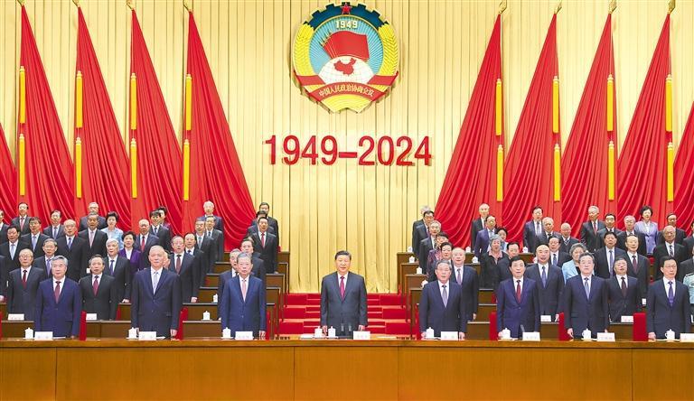 大会在雄壮的国歌声中开始。习近平发表了重要讲话。他指出,75年来的实践充分证明,人民政协是中国共产党把马克思列宁主义统一战线理论、政党理论、民主政治理论同中国具体实际相结合、同中华优秀传统文化相结合的伟大成果,是中国共产党领导各民主党派、无党派人士、人民团体和各族各界人士在政治制度上进行的伟大创造,具有深厚的文化基础、理论基础、实践基础,具有鲜明中国特色和显著政治优势,是科学、有效、管用的制度安排,在人类政治制度发展史上具有独特政治价值。