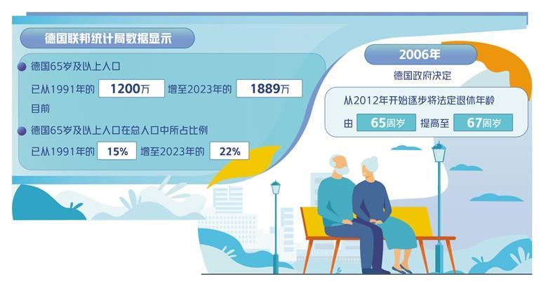 为保障养老金体系的可持续性,德国政府于2006年通过一项法律,决定从2012年开始,逐步将法定退休年龄由65周岁提高至67周岁,并且不分性别,改革方案将于2030年完成。届时,若无特殊情况,德国人都要满67周岁才能领取全额养老金。