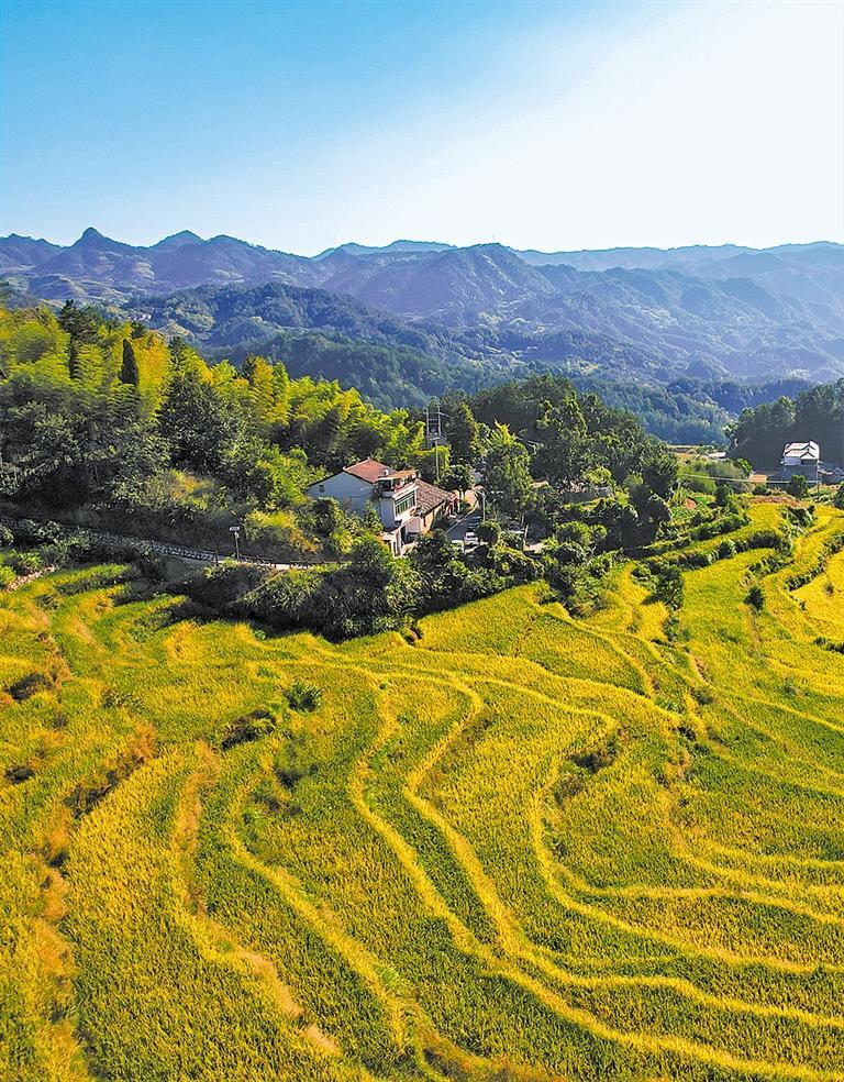 9月24日,湖北省蕲春县雾云山村千层梯田的水稻进入收割期。近年来,当地以“支部+合作社+农户”模式,完善种植、加工、销售产业链,助力乡村振兴。王 江摄(中经视觉)