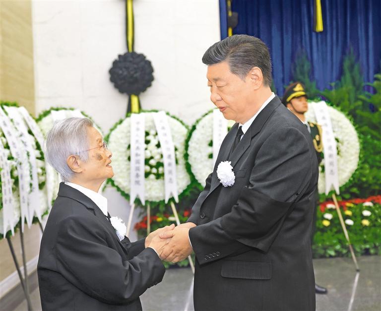 上午9时30分许,习近平、李强、赵乐际、王沪宁、蔡奇、丁薛祥、李希、韩正等,在哀乐声中缓步来到任建新同志的遗体前肃立默哀,向任建新同志的遗体三鞠躬,并与任建新同志亲属一一握手,表示慰问。