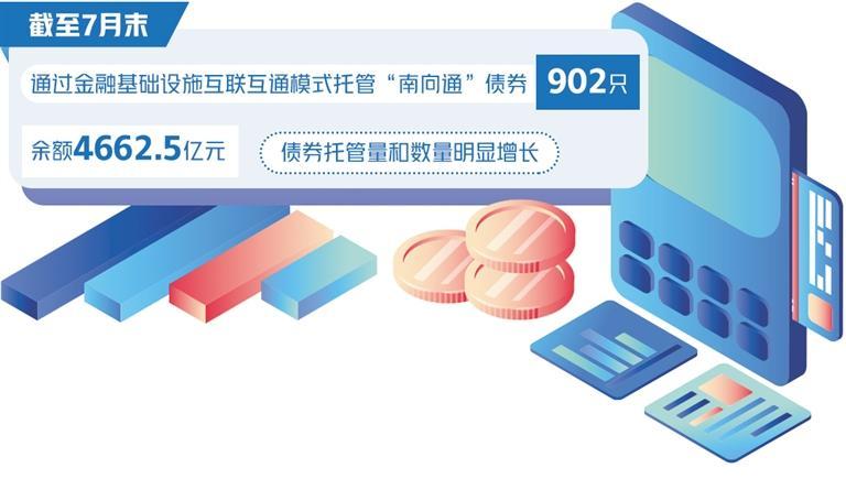 过去3年,“南向通”总体势头良好。根据上海清算所数据,截至今年7月末,通过金融基础设施互联互通模式托管“南向通”债券902只,余额4662.5亿元,债券托管量和数量明显增长。