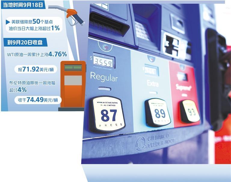 美联储此次降息对国际石油市场产生明显的溢出效应。当地时间9月18日,美联储降息50个基点,提振了市场对经济增长和能源需求的预期。受此消息影响,油价当日大幅上涨超过1%;到上周五收盘,美国西得克萨斯的轻质原油(WTI)期货一周累计上涨4.76%,报71.92美元/桶,布伦特原油期货一周也有超过4%的涨幅,收于74.49美元/桶。虽说油价涨幅不大,但却稍稍缓和了一个多月来的跌势,市场价格有所恢复。特别是本周二油价继续上攻,布伦特原油期货价格盘中一度突破75美元/桶,做多情绪高涨。