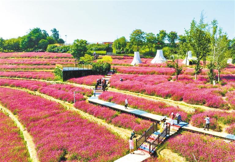 金秋时节,贵州省贵阳市乌当区花画小镇旅游景区的千日红迎来盛开期,吸引市民游客前来赏花游玩。近年来,乌当区依托丰富的生态和文旅资源,推出“赏花+研学”“赏花+美食”“赏花+露营”等特色活动,打造集观赏游玩、生态休闲、采摘体验和农耕文化于一体的赏花经济,带动周边群众增收。 袁福洪摄(中经视觉)