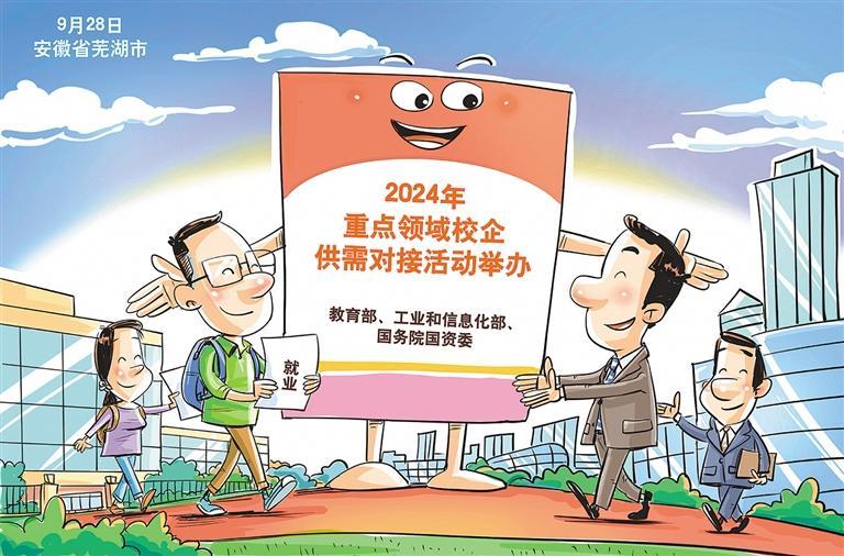 教育部、工业和信息化部、国务院国资委9月28日在安徽省芜湖市联合举办2024年重点领域校企供需对接活动,推动高校与企业加强供需对接和人才交流,推进以科技发展和国家战略需求为牵引的人才培养模式改革,助力高校毕业生高质量充分就业和企业人才储备。校企供需对接能够帮助用人单位培养和招聘更多实用型、复合型和紧缺型人才,推动高校人才培养与就业有机联动、人才供需有效对接。要鼓励和支持各高校邀请用人单位参与就业课程设置、案例开发、师资队伍培训等环节,推动用人单位深度参与学校人才培养改革,帮助学生增进社会认知、提升求职能力、科学合理就业,提高人才供需对接效率。(时 锋)