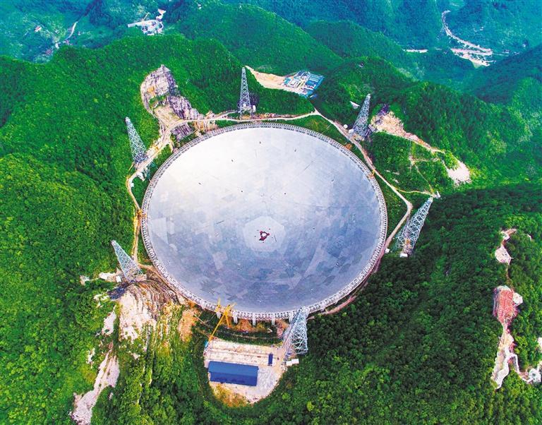 ⑥2016年9月25日,贵州黔南州平塘县大窝凼,500米口径球面射电望远镜(FAST)宣告落成启用。“中国天眼”从预研到建成历时22年,是具有我国自主知识产权、世界最大单口径、最灵敏的射电望远镜。