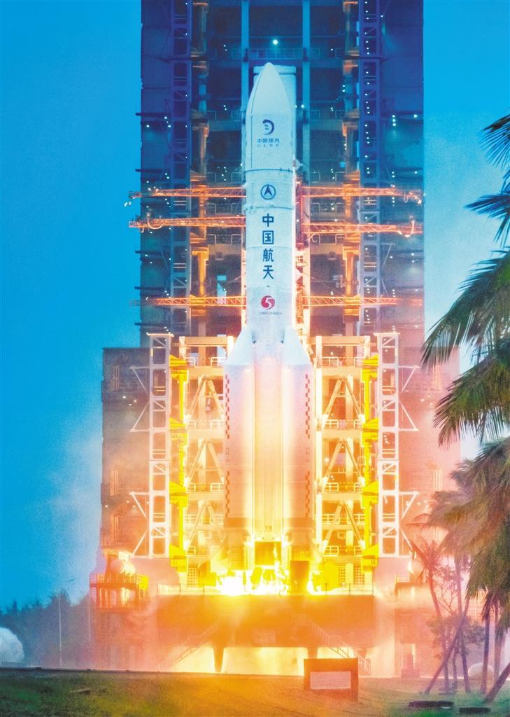 ⑤2024年5月3日17时27分,长征五号运载火箭托举着嫦娥六号探测器在中国文昌航天发射场点火起飞。嫦娥六号探测器高约7.2米、重约8吨,是我国迄今为止最重的深空探测器。宿 东摄(中经视觉)