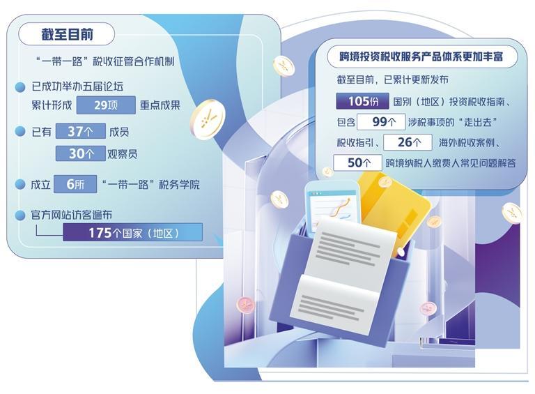 不断完善的跨境税费服务为“一带一路”税收合作提供了坚实保障。2023年,税务部门集成创新推出“税路通”跨境税收服务品牌,为纳税人提供更加专业化、规范化、国际化的税费服务。“税路通”品牌发布以来,全国所有省级税务局结合地域特色,全部创建了各自“税路通”子品牌,开展系列政策宣讲活动和跨部门协同服务。