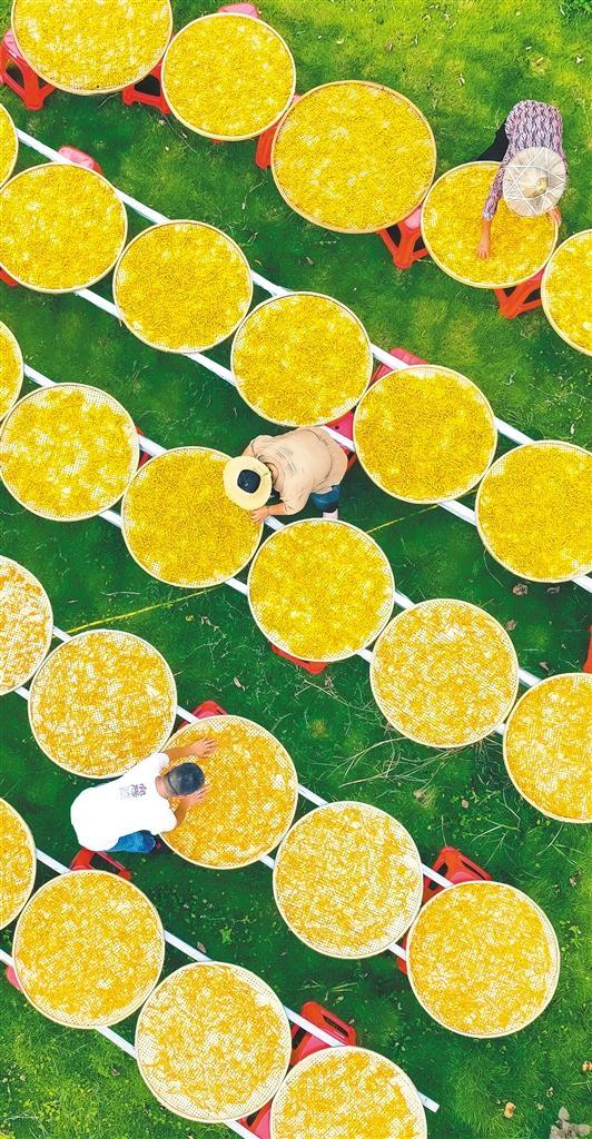 ④8月30日,福建省南安市向阳乡坑头村,村民在晾晒黄花菜。谢贵明摄(中经视觉)