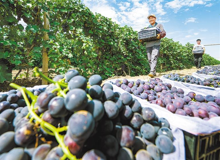 ⑥9月19日,新疆昌吉回族自治州昌吉市大西渠镇玉堂村,村民在采收葡萄。昌吉市各乡镇种植的2.9万亩葡萄迎来丰收。何 龙摄(中经视觉)