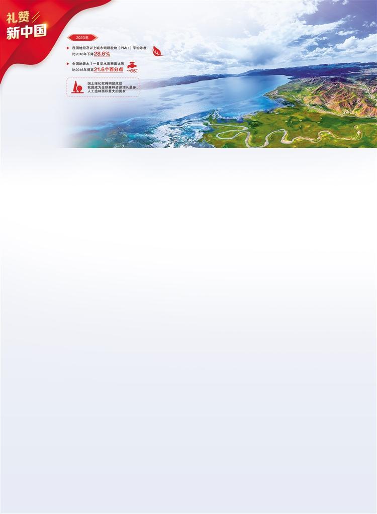 绿水青山就是金山银山。75年来,亿万人民为建设一个山川秀美的家园而不懈努力,全方位、全地域、全过程加强生态环境保护。如今,天更蓝、水更清、地更绿,生态环境质量持续改善,人民群众的获得感、幸福感和安全感不断增强。建设生态文明,功在当代,利在千秋。锚定美丽中国建设目标,锲而不舍、久久为功,我们必将书写出新的绿色奇迹。