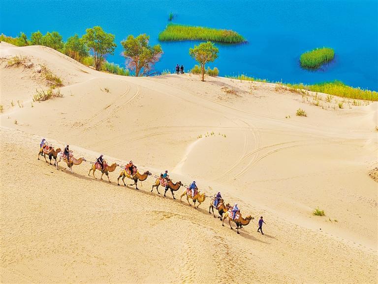 ④9月7日,游客在新疆巴音郭楞蒙古自治州罗布人村寨景区游玩。