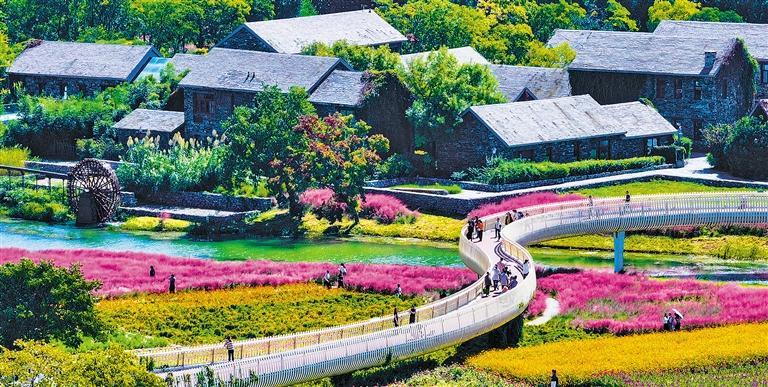 10月4日,江苏省宿迁市湖滨新区三台山国家森林公园风景宜人。2000余亩衲田花海五彩缤纷,粉黛乱子草、硫华菊、醉蝶花等花卉争奇斗艳,竞相开放。游客徜徉花海,拍照留影,尽享国庆假日时光。